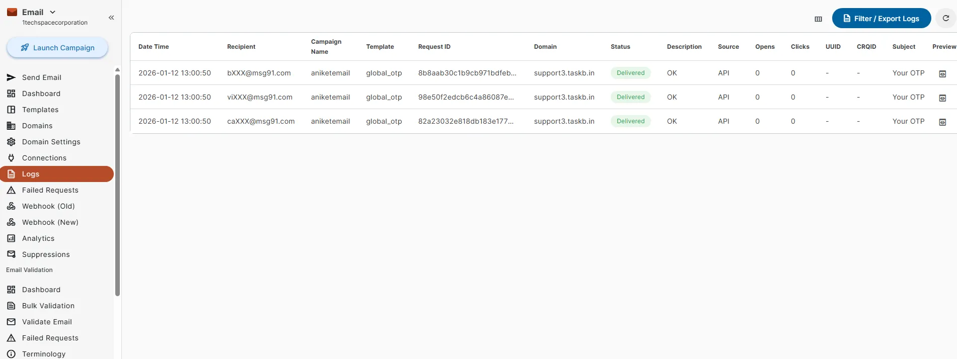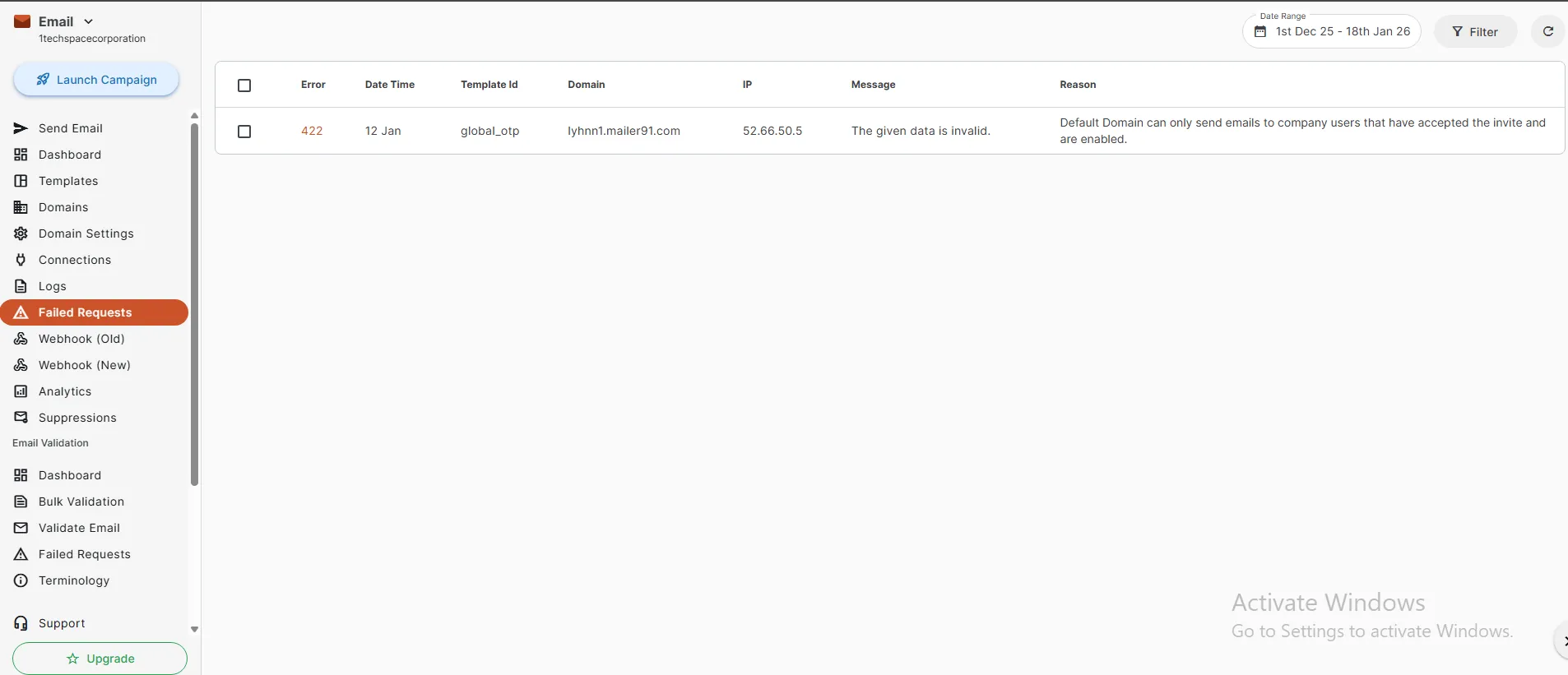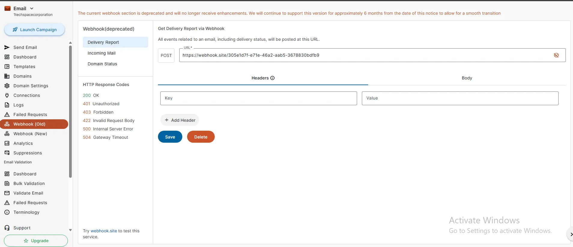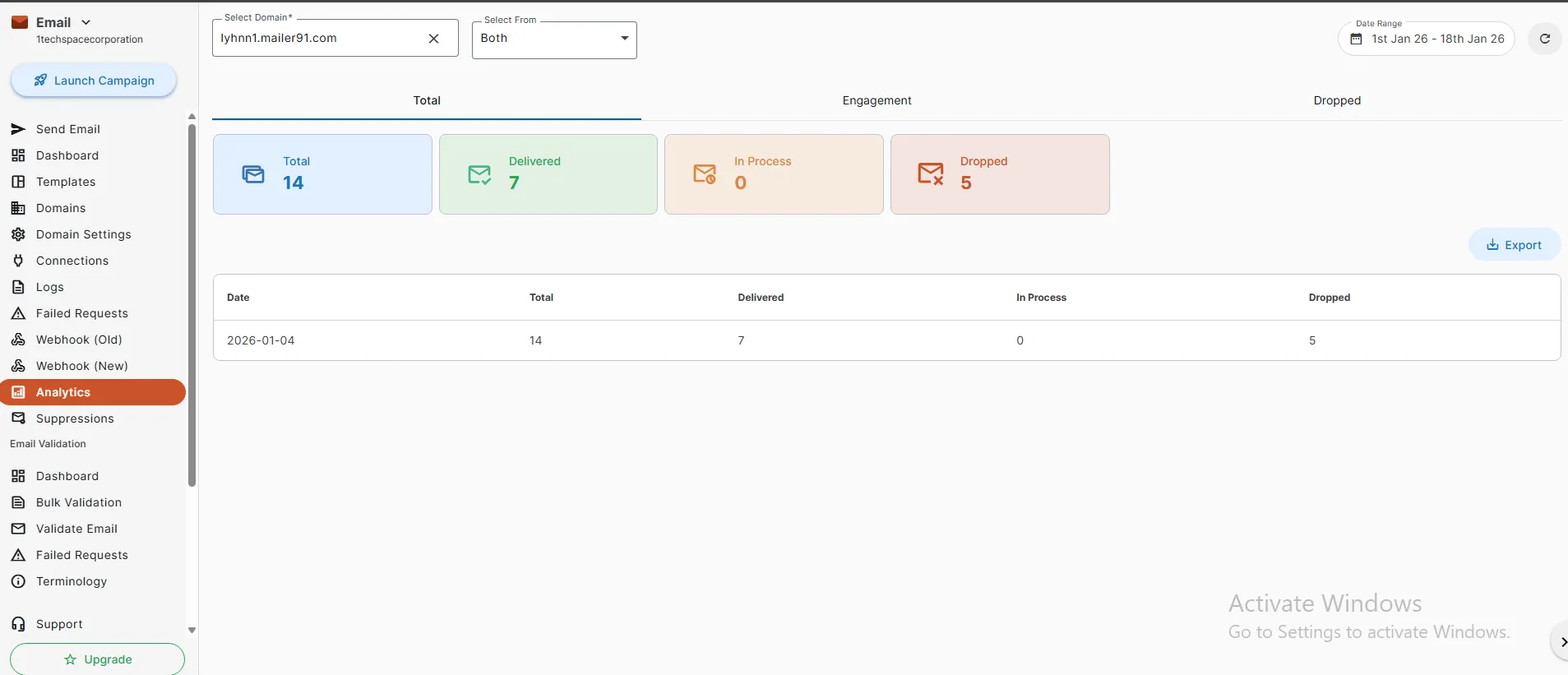 Note: You cannot delete a domain even if one email has been sent from that domain ID because it will create problems in the reports section.