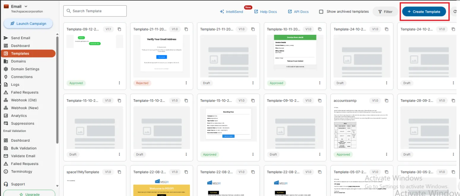 Here you can create the template of the email you would be intending to send to your users and check all the templates created so far along with their statuses as active, rejected, or pending.
