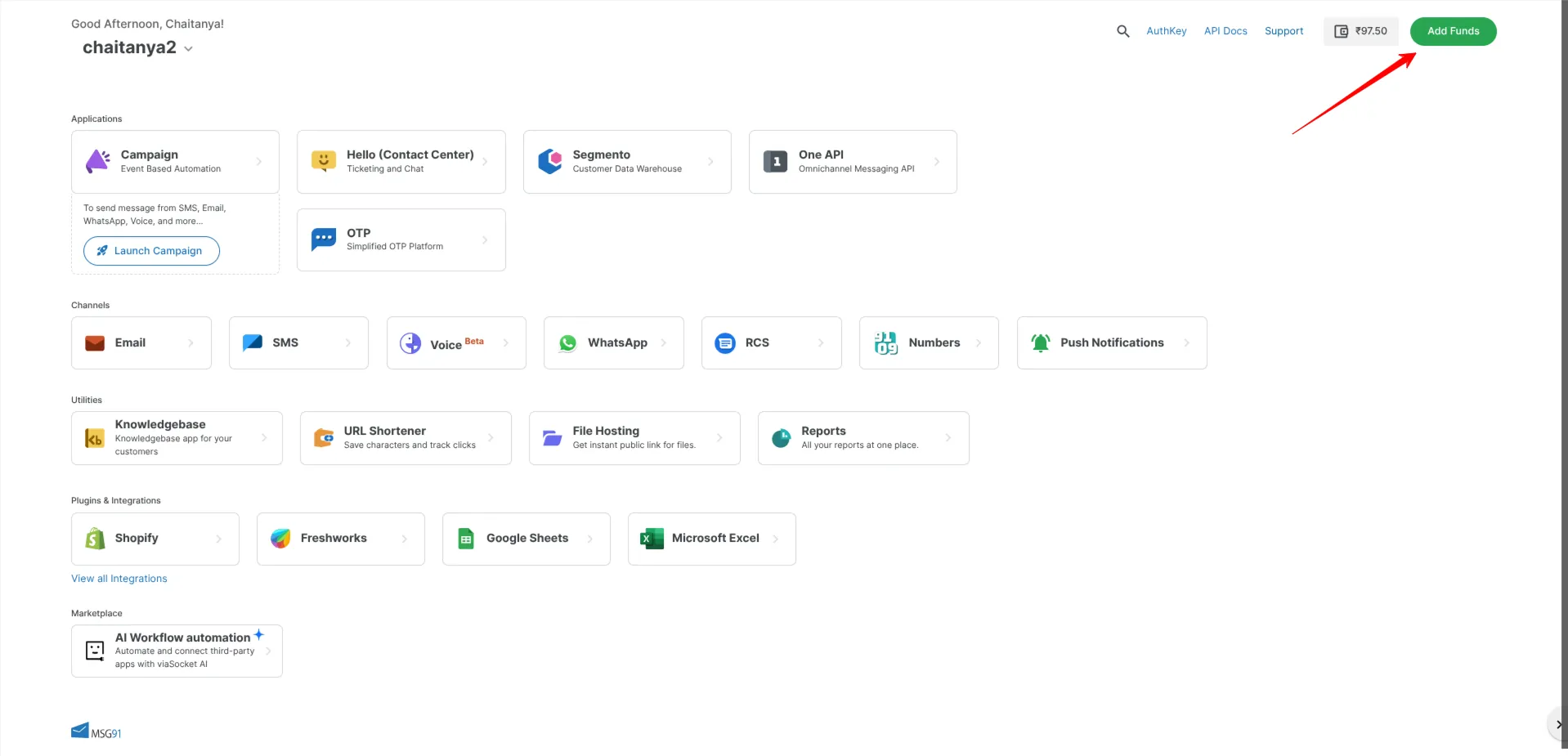 5. Once the details are filled you need to share the OTP on the registered number and your payment will be added in the MSG91 wallet Successfully.