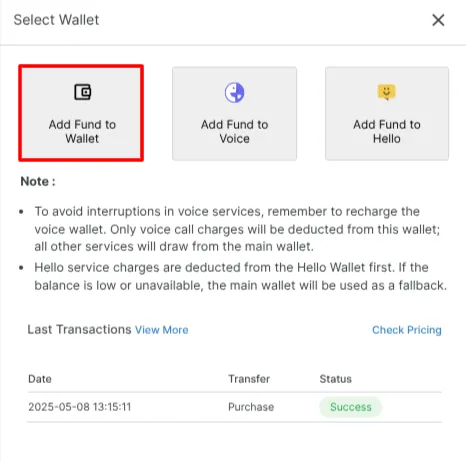 2. Click on Add Funds to Wallet.