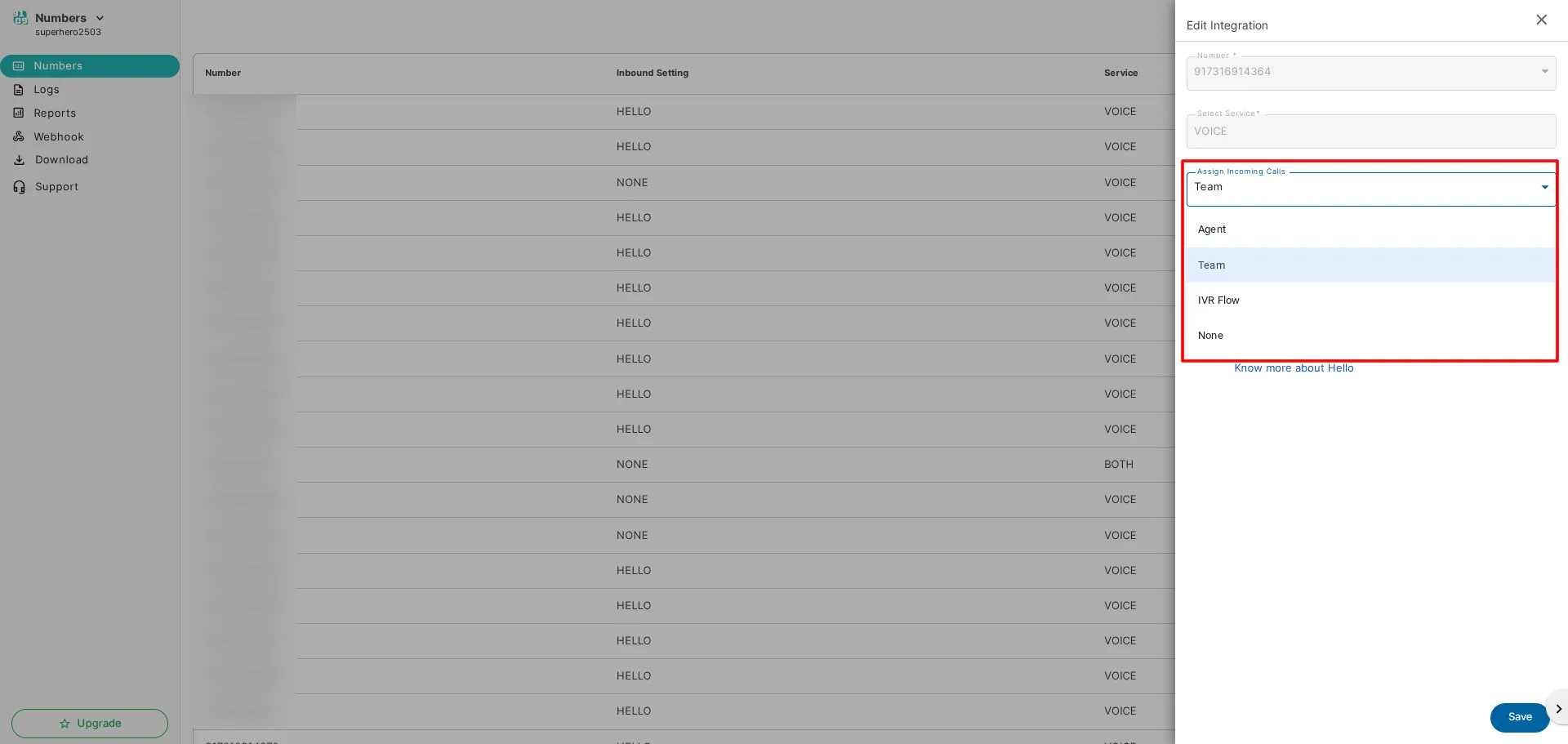 Now, please follow the steps below to enable incoming calls on your virtual number. Once done, Click on save.